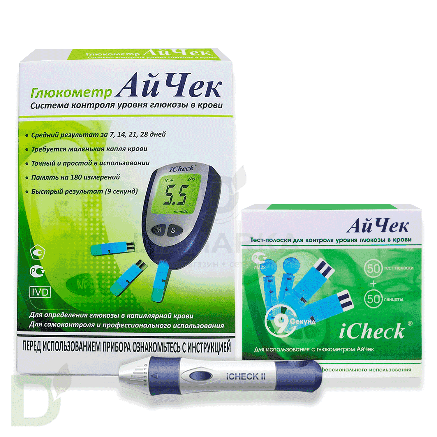 • предназначены для использования совместно с глюкометром АйЧек (iCheck). Великолепно подходят как для самостоятельного контроля уровня глюкозы в домашних условиях, так и для применения в условиях стационара. Представляют собой отличное предложение бюджетного класса.