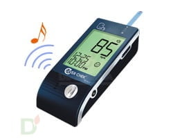 Такой вариант глюкометра привлечет даже детей. Во время забора крови анализатор голосом напоминает о необходимости расслабления, также имеется голосовое напоминание, если тестовая полоска плохо уставлена или вовсе не установлена в гнездо прибора.