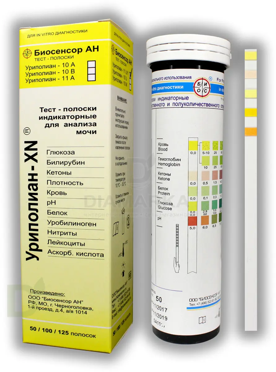 Тест-полоски визуальные Уриполиан-XN 1-he №50 для определения биохимические параметров в моче