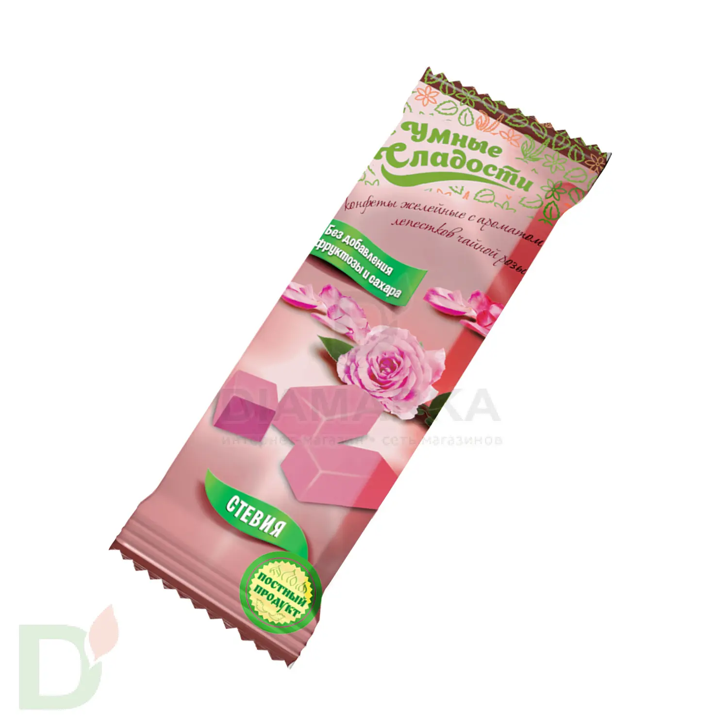 патока, изомальт, загуститель-пектин, регулятор кислотности-кислота лимонная, влагоудерживающий агент-лактат натрия, ароматизатор «Чайная роза», краситель пищевой, подсластитель-стевия.