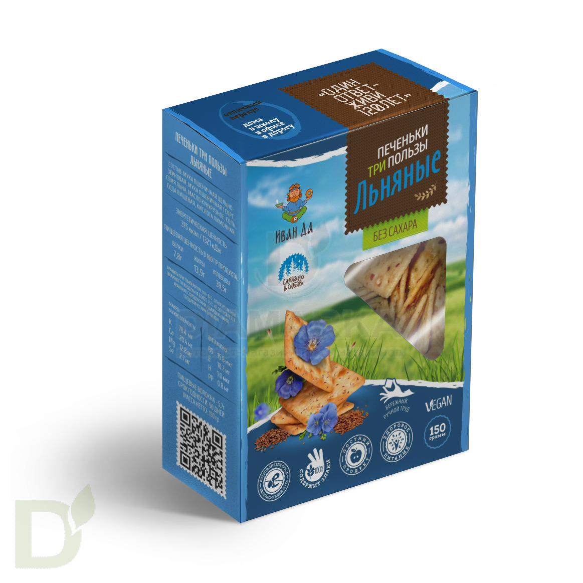 Компания Иван-ДА производит оригинальные и уникальные продукты, которые на все 100% соответствуют принципам здорового питания. Сырье для продукции проходит тщательный отбор, а в составе вы не найдете синтетических компонентов: все изготовлено исключительно с любовью и заботой о здоровье потребителя! Натуральность, уникальность и польза - вот главные ценности бренда.Хрустящее печенье с натуральным составом